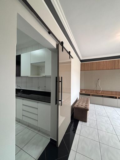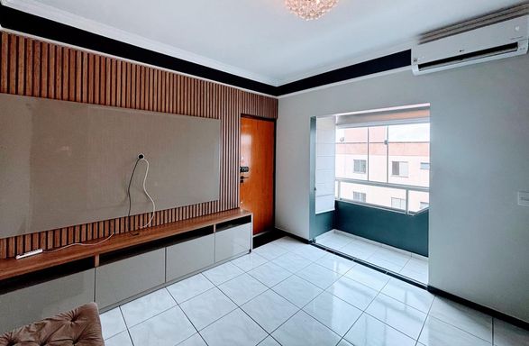 🛋️ Sala em 2 ambientes com sacada, painel, ar-condicionado e cortinas