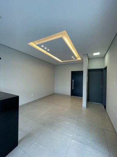 🛋️ Sala de estar com pé direito alto, acabamento com sanca e iluminação completa