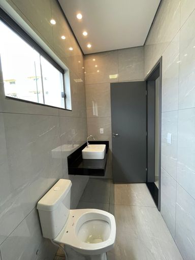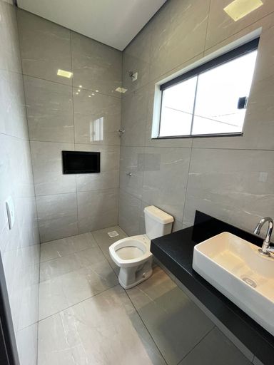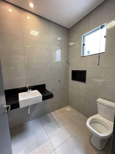 🛁1 Banheiro social e banheiro da suíte totalmente revestidos em porcelanato polido, com pias e nichos em granito São Gabriel;